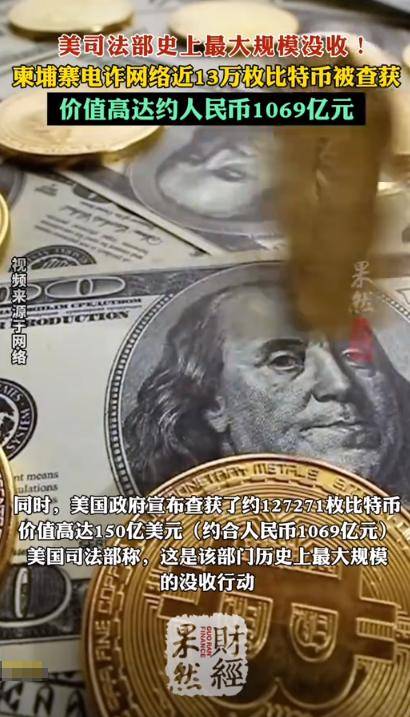 查封柬埔寨太子集团名下 12.7 万枚比特币,按当前汇率折算,足足 1069 亿元人民币!