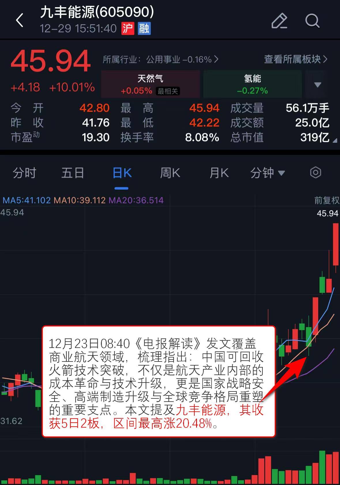 发文覆盖商业航天领域,梳理指出:中国可回收火箭技术突破,不仅是航天产业内部的成本革命与技术升级,更是国家战略安全、高端制造升级与全球竞争格局重塑的重要支点。本文提及九丰能源。