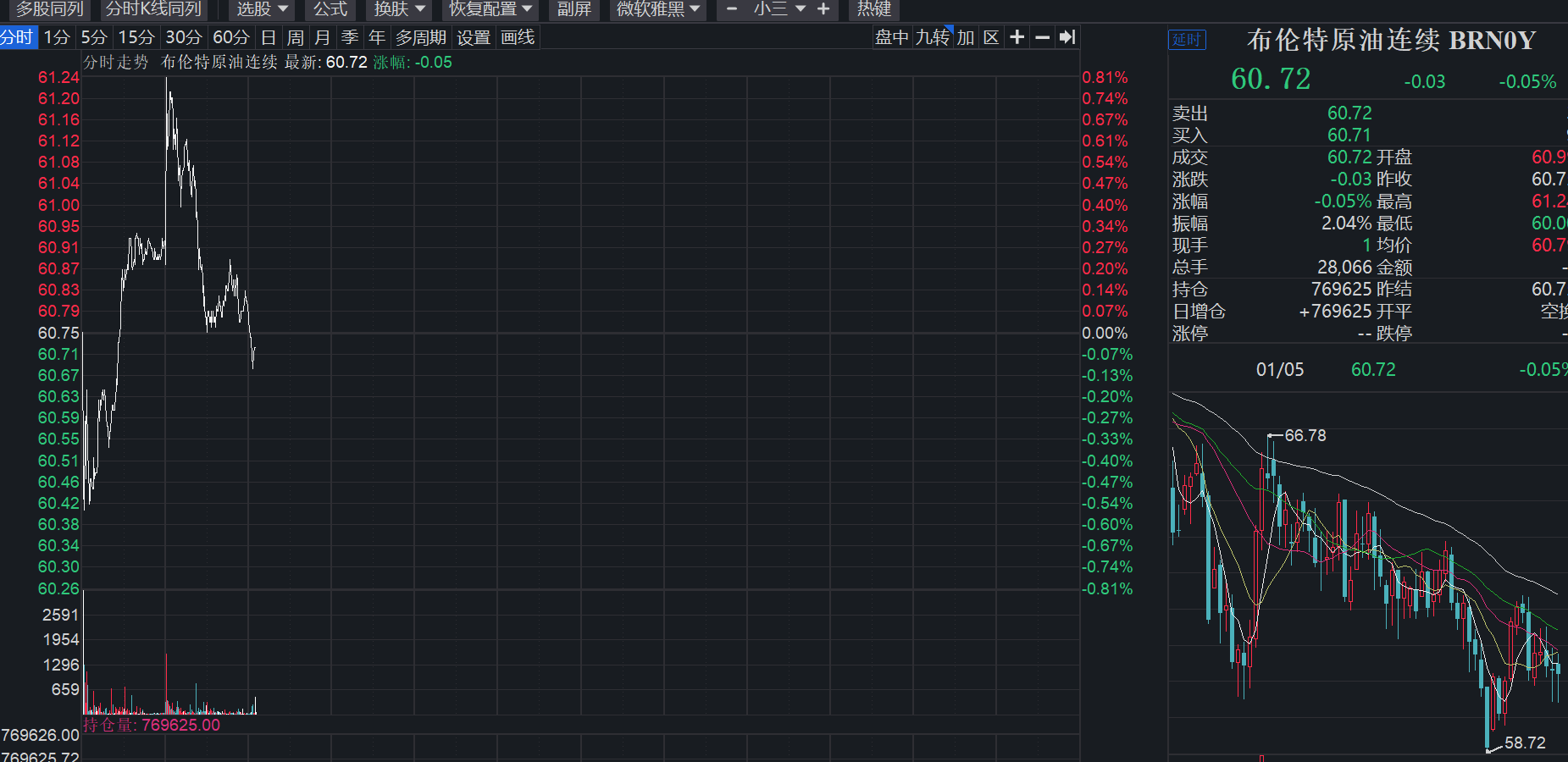 2026-01-05米兰体育,米兰体育官方网站,米兰体育APP下载由于委内瑞拉总统马杜罗被俘,原油市场本周一出现高走,今日早间美原油一度上涨0.5%,最高触及57.73美元/加仑,布伦特原油则最高触及61.24美元/加仑。不过随后走弱,截至北京时间早盘11点20分,两个原油品种翻绿,美原油跌0.12%,报57.25美元,布伦特原油跌0.5%,报60.72美元。