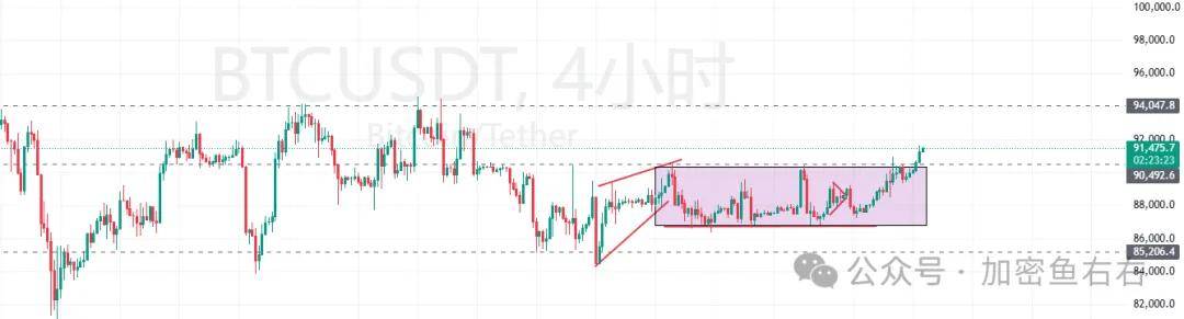 (1)9w看成支撑阻力互换,不能再跌回去(跌回去视作假突破继续空头趋势),继续向上阶段关键节点94K、98K、103k(概率递减)