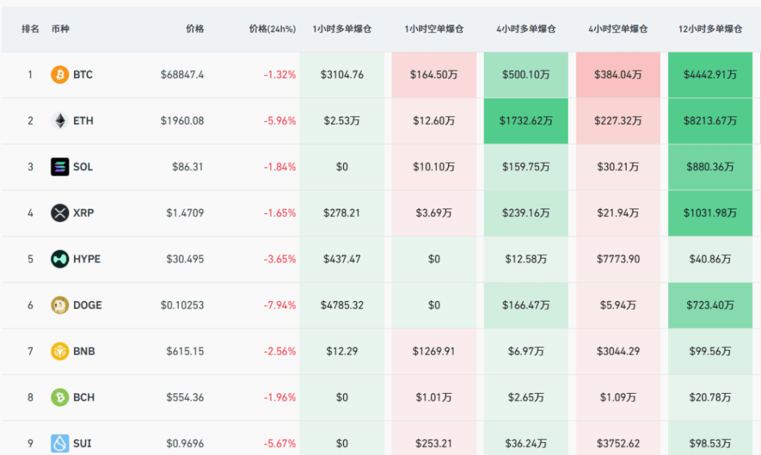 过去24小时,虚拟币市场再度杀跌。狗狗币大跌近8%,以太坊大跌近6%,比特币也由7万美元以上跌落至6.9万美元下方。