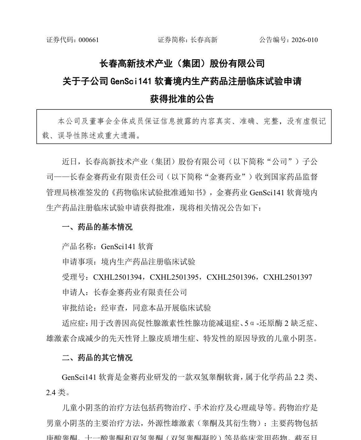 坦白讲,GenSci141临床获批这个消息,既不算重大利好,也不是突发利好。 风声早在2025年12月就已经传过一轮了,对于长期跟踪长春高新的投资者来说,这款药的进展并不意外。 今天的涨停,更像是一种情绪的集中宣泄。