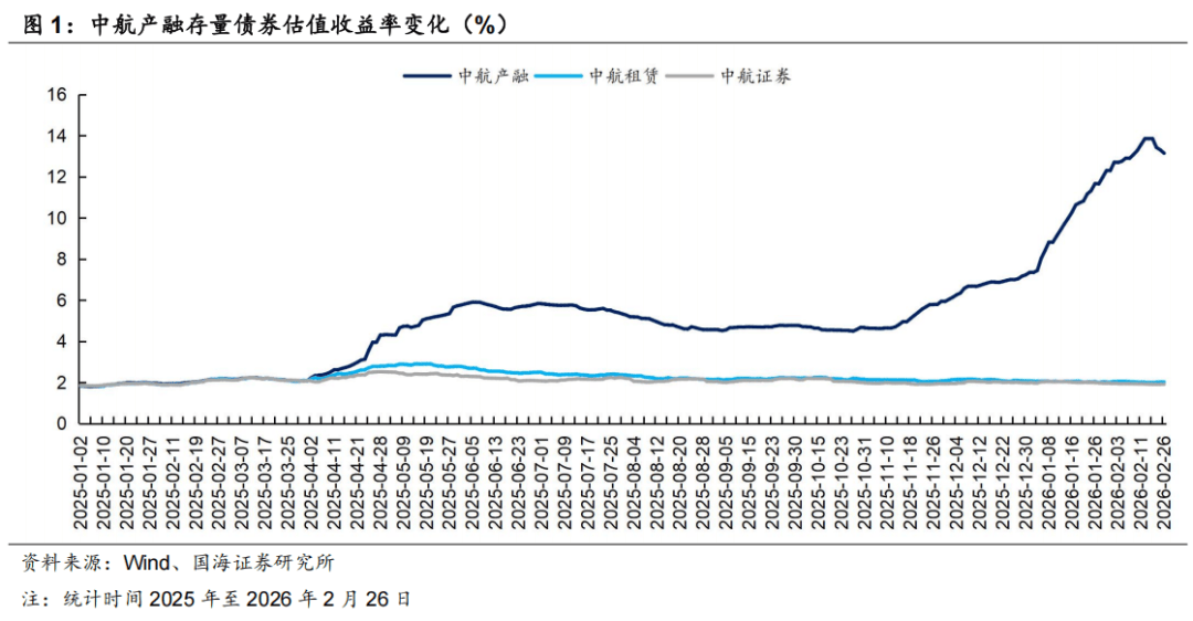 2026年2月10-12日,中航产融公告即将召开“23产融06”债券持有人会议,市场担忧加剧,存量债券估值上行58bp,2月12-26日,利差压缩71bp,“债券专项投资者沟通机制”的建立一定程度缓解市场情绪。