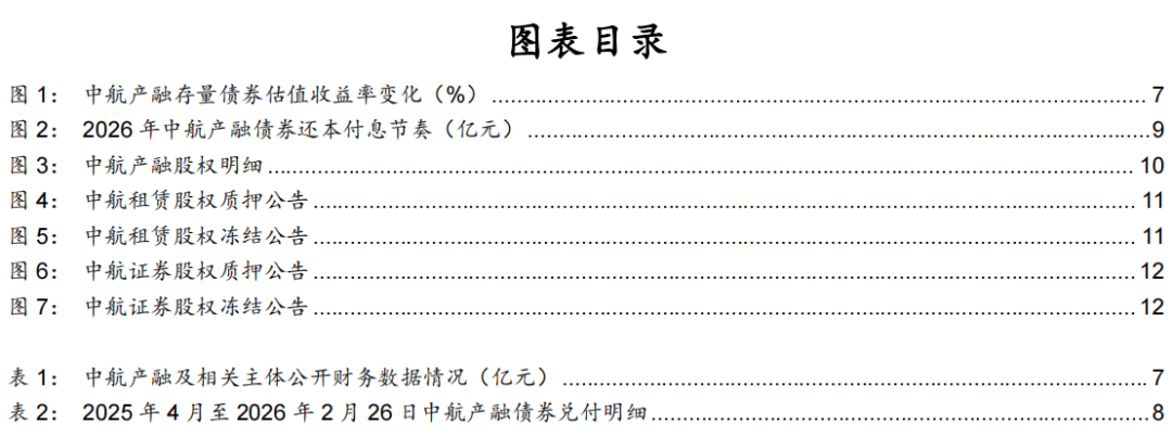 结论综合来看,我们认为中航工业集团支持意愿不弱,资金实力可观,短期债券兑付仍有保障;中航产融剩余可变现资产仍存,中长期资源整合尚有空间;同时政策文件有效兜底事态走向。在中航信托处置进展平稳可控的前提下,2026年中航产融事件或进入反转阶段,值得关注。