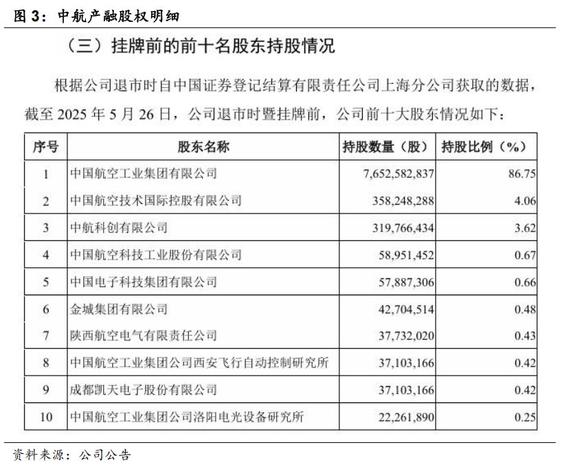 现金选择权方面,异议股东现金选择权的行权价格设定为3.54 元/股,这一价格略高于公司停牌时收盘价的每股3.44元,溢价率近3%,共支付交易对价约146亿元,一定程度上保障了中小股东的合法权益。退市后中国工业集团直接持股中航产融86.75%,实现绝对控股。