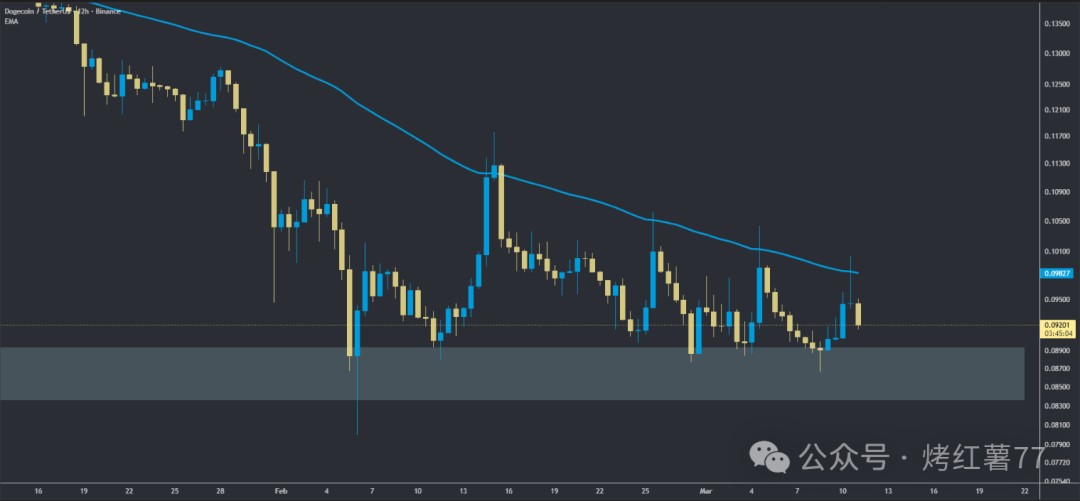 目前市场呈现两种可能走势:一是突破EMA阻力位,这可能引发一波强劲上涨;二是未能守住当前价位,狗狗币可能跌至0.084寻求支撑。