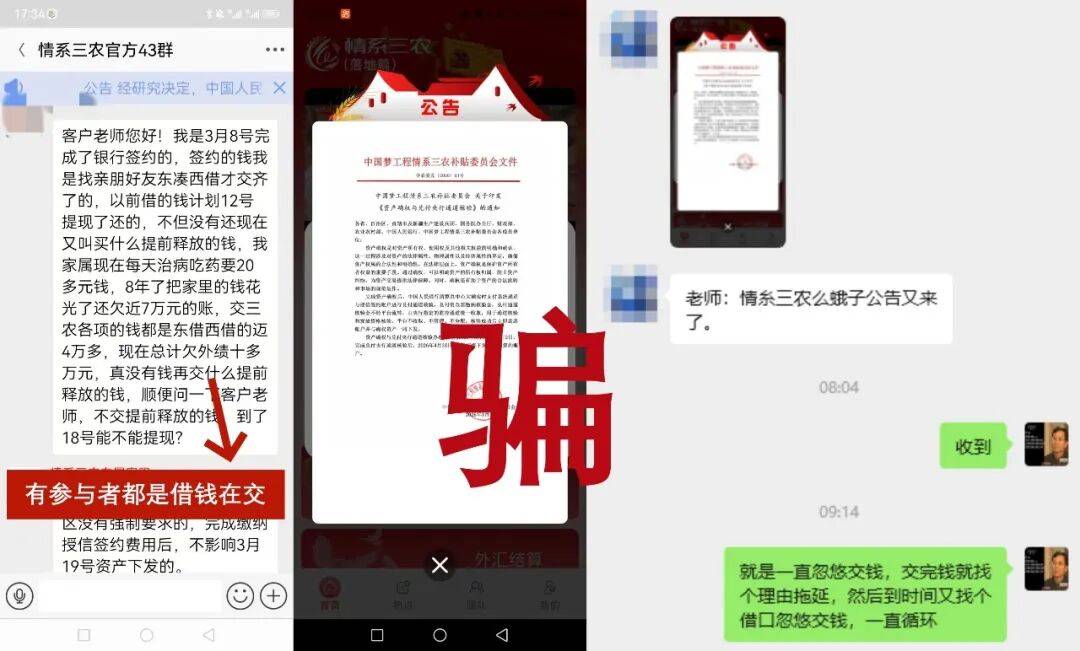 “狼来了”的故事被这伙骗子玩得炉火纯青,真心希望群里的“农场主们”能早日认清骗子的真面目,一次次交钱、一次次延期,骗局的本质早已昭然若揭。