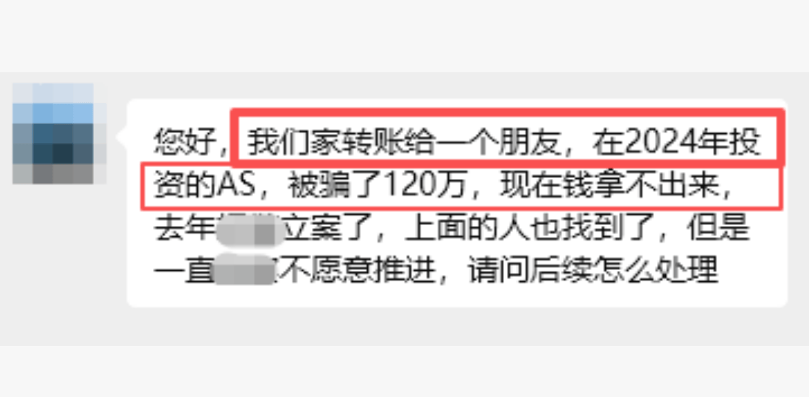 近日,多位网友向我们求助,称自己在AS项目投资几十万甚至上百万,却因项目方不断变换规则,最终落得血本无归的下场,加之骗子禁止成员之间相互联系,大家连举报所需的证据都无法收集。
