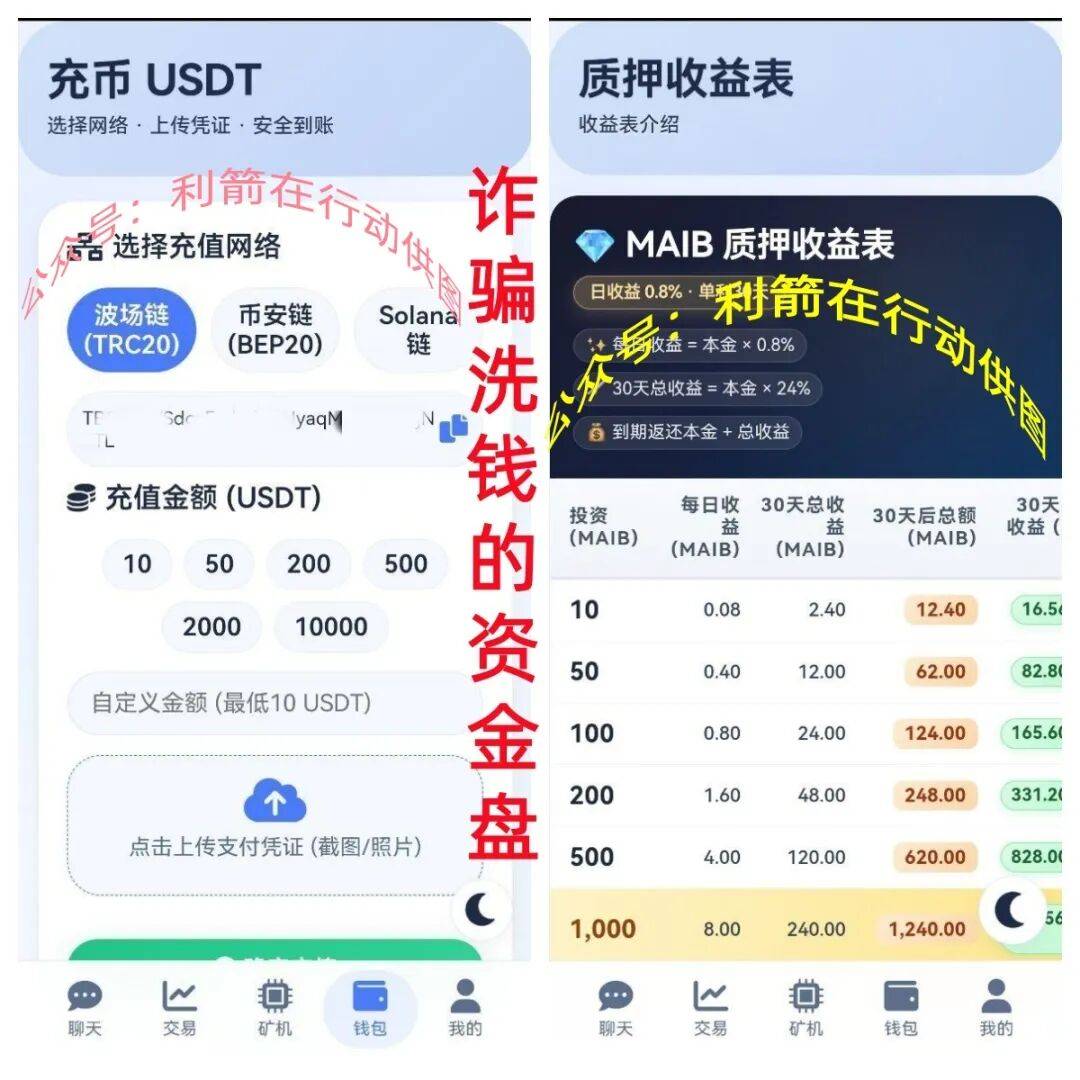 这是通过充值虚拟币进行诈骗洗钱的资金盘,充值主流虚拟币置换代币进行炒作,不等的金额每天有固定的收益,明显就是杀猪盘套路。