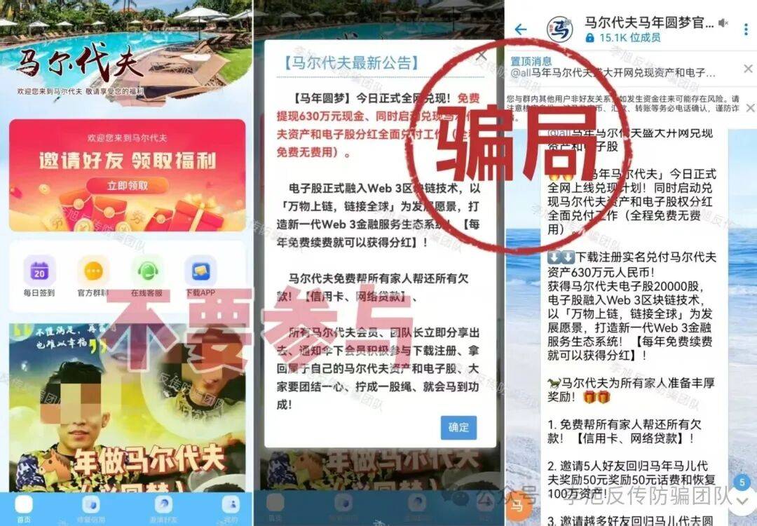 在“云数贸张健”相关的骗局项目当中,“马尔代夫”系列可以说是骗子们最爱用的噱头之一。目前已衍生出多个版本,都是境外诈骗团伙换的马甲,务必高度警惕。